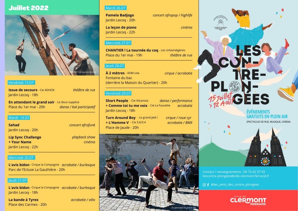 En 2022, la créativité sera à l’honneur, et c’est grâce aux Contre-plongées que l’on pourra se rendre compte de l’étendue et de l’état dans lequel sont les domaines culturels. Il y aura des événements dans plusieurs endroits à Clermont Ferrand, et vous aurez une chance de voir les artistes de votre région sur scène. Les Contre-plongées sont une excellente occasion de découvrir des styles de musique ou de théâtre que vous ne connaissez pas encore au mois de juillet.